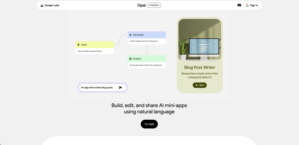 구글 오팔(Google Opal)은 한마디로 “자연어로 코딩하는 노코드 AI 미니 앱 빌더”입니다.