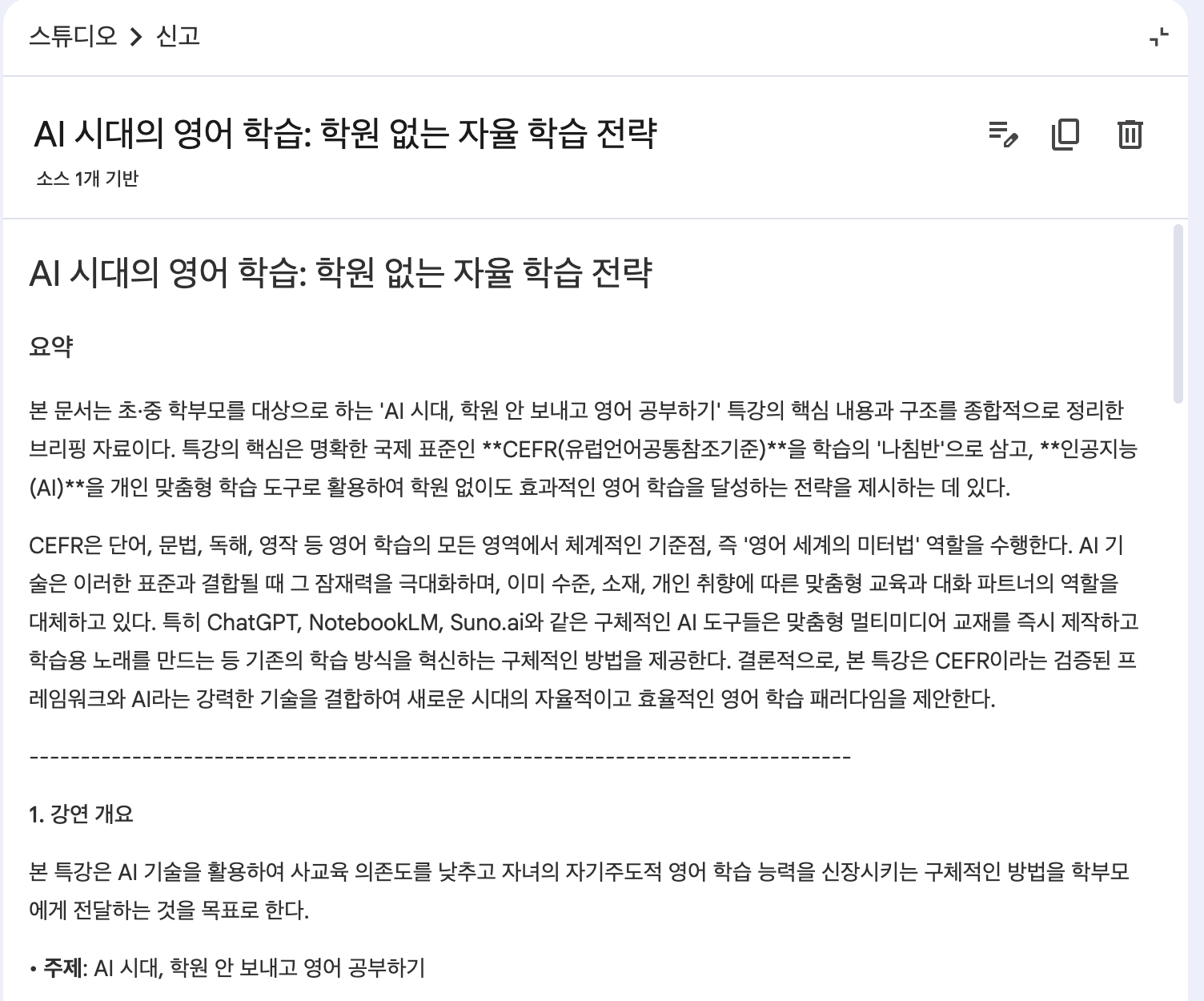 • 강연 요약본, 핵심 개념설명, 브리핑 문서도 뚝딱