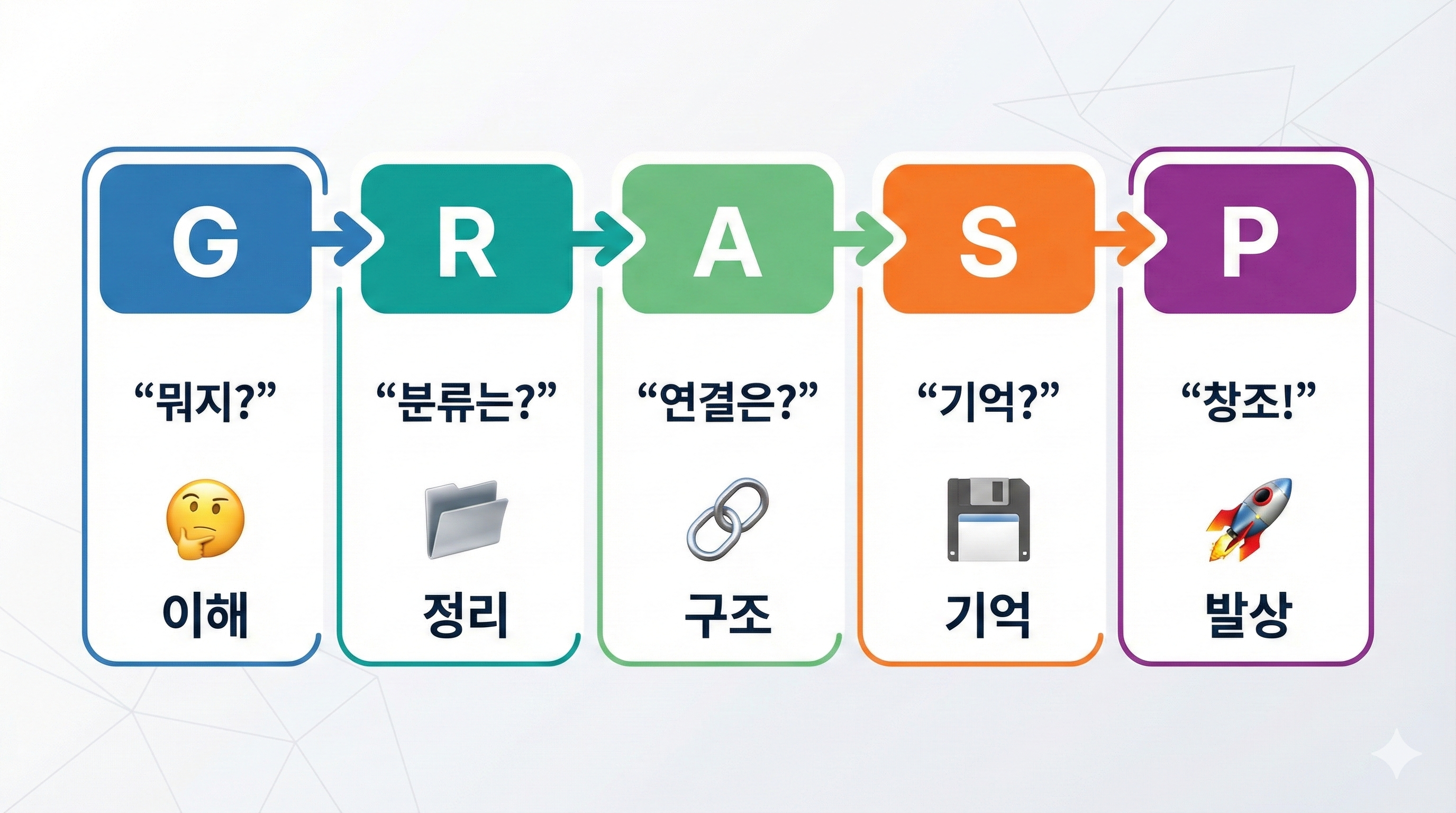 "GRASP(파악하다)"라는 단어 자체가 지식을 완전히 자기 것으로 만드는 과정을 상징합니다.